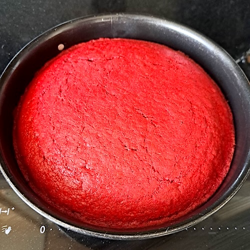 En réfléchissant aux saveurs et recettes que j’allais utiliser, j’ai pensé par hasard à la belle couleur rouge du Red Velvet en me disant que ce serait joli d’avoir un gâteau qui soit aussi en partie rouge à l’intérieur.